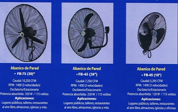 Descripción: Ventiladores de pared diferentes tamaños marca Sankey.