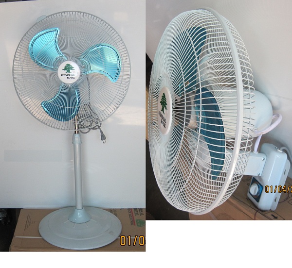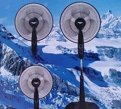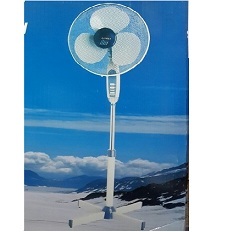 Descripción: Ventuilador de piso, 20", 16" y 12", plasticos, 3 velocidades, angulo vertical ajustable, 110 v, especial para la playa u otros lugares.