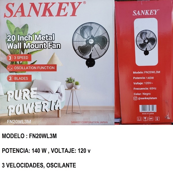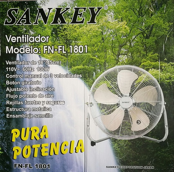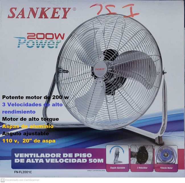 Descripción: ventilador de piso 20", marca sankey, 3 velocidades, plástico, 115 v