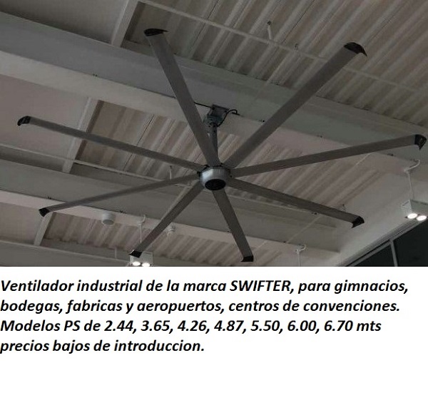 Descripción: Ventiladores Industriales Swifter diferentes medidas de 244 a 670 cm