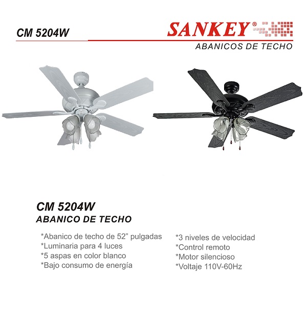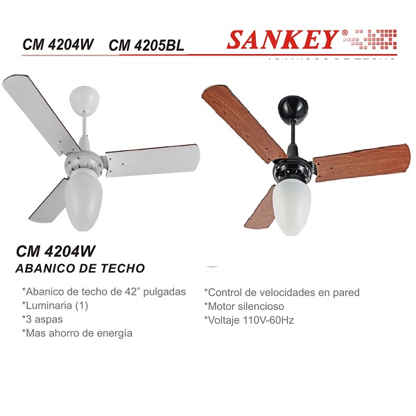 Descripción: Ventilador de techo marca Sankey.