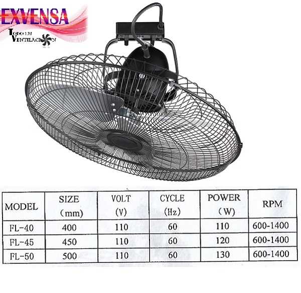 Descripción: Ventiladores orbitales Industriales de techo, diferentes medidas, 16"m, 18", 20", 110 v, control de pared, 3 velocidades, 360 grados.
